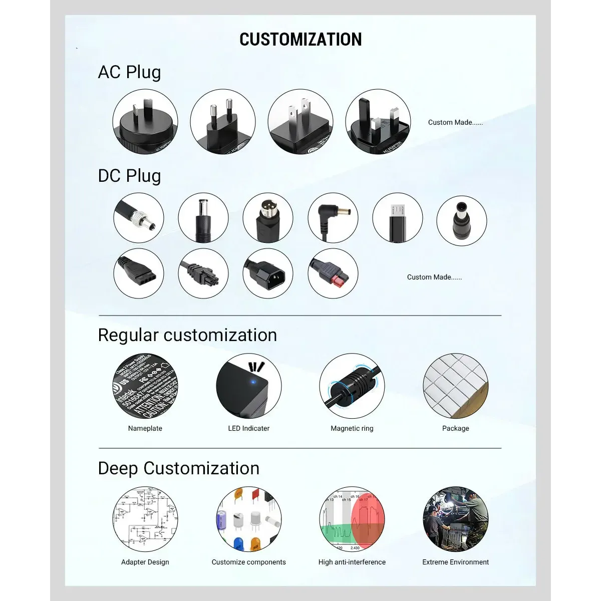 R: Kami adalah produsen profesional dengan 12 tahun pengalaman dalam adaptor AC/DC dan catu daya di Shenzhen, Cina.
