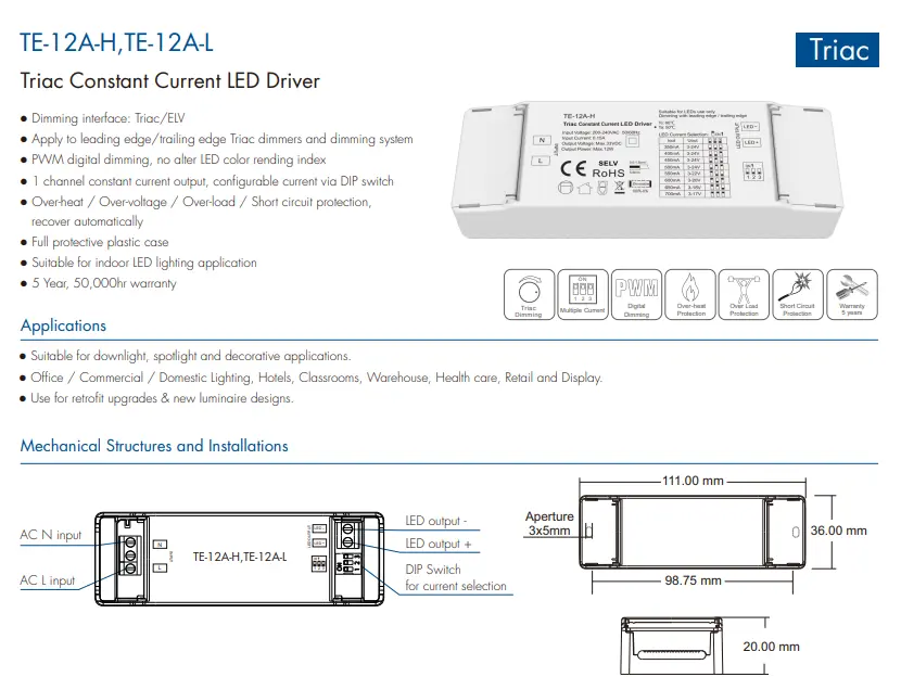 Driver led peredupan triac arus konstan 12W Starwell berkualitas tinggi mengintegrasikan fungsi perlindungan tegangan lebih, arus lebih, dan hubung singkat, serta dilengkapi faktor daya tinggi dan distorsi harmonik rendah, memenuhi berbagai standar efisiensi dan keselamatan energi internasional. Desainnya yang ringkas membuatnya mudah dipasang dan cocok untuk berbagai skenario pencahayaan dalam ruangan seperti lampu downlight, lampu sorot, dan lampu hias, menjadikannya solusi pengemudi ideal untuk renovasi hemat energi dan aplikasi pencahayaan cerdas. ProdukFitur: