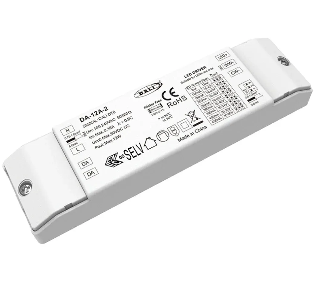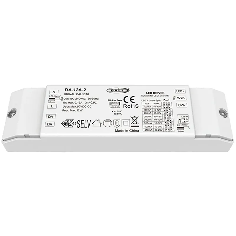 Driver LED Dimmable 12W DALI CW WW CCT STARWELL berkualitas tinggi dari pabrik dirancang untuk aplikasi pencahayaan putih premium yang dapat disetel yang memerlukan kontrol presisi dan kinerja andal. Driver ringkas dan berefisiensi tinggi ini menghasilkan keluaran arus konstan 12W (12V, 1000mA) yang stabil, memastikan kinerja optimal dan umur panjang untuk modul LED yang terhubung. Driver LED Dimmable DALI CW WW CCT 12W kami yang berkualitas tinggi dilengkapi antarmuka Dual DALI yang canggih, mendukung peredupan DALI-2 (DT8) untuk peredupan mulus 10%-100% dan penyetelan CCT (Suhu Warna Terkorelasi) independen dari putih hangat 2700K hingga siang hari sejuk 6500K. Dengan efisiensi tipikal >90% dan Faktor Daya tinggi (PF>0,9), ini meminimalkan pemborosan energi dan beban jaringan. Bertempat di wadah kompak berperingkat IP20, ia menawarkan pengoperasian beban penuh dalam rentang suhu luas -20°C hingga +50°C, menjadikannya solusi daya serbaguna dan cerdas untuk pencahayaan arsitektural, komersial, dan perumahan kelas atas.