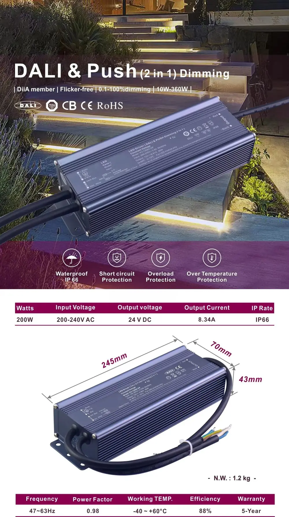 Driver LED tegangan konstan 12V/24V STARWELL berkualitas tinggi mengintegrasikan protokol DALI-2 canggih dan fungsionalitas Push Dim yang mudah digunakan dalam satu perangkat yang siap digunakan di masa depan. Dirancang untuk para arsitek, perancang pencahayaan, dan pemasang yang menginginkan keunggulan teknis dan fleksibilitas praktis, driver ini menyederhanakan proyek-proyek kompleks sekaligus memberikan kinerja luar biasa.