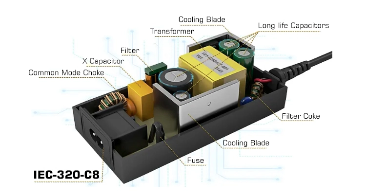 Adaptor daya desktop STARWELL 150W dilengkapi dengan port input daya standar IEC C6 dan konektor output DC 5,5*2,1 mm—yang berfungsi sebagai solusi daya profesional untuk perangkat berdaya tinggi. Akurasi keluaran tegangan adaptor daya AC/DC 150W mencapai ±2% dan efisiensi konversi daya melebihi 90%. Ini telah lulus sertifikasi CE dan FCC untuk memastikan keamanan. Adaptor daya STARWELL ideal untuk memberi daya pada perangkat di kantor, hiburan, dan skenario komersial, ini merupakan alternatif hemat biaya dibandingkan adaptor asli atau perluasan untuk kebutuhan daya multi-perangkat.