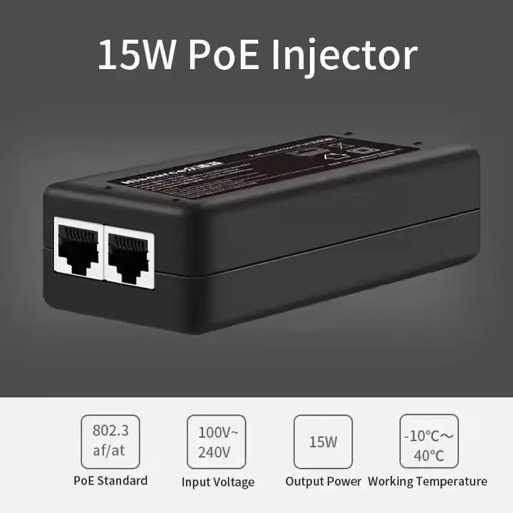 Mendukung tegangan global 100–240V, adaptor PoE IEEE 802.3af 15W ini berfungsi di seluruh dunia. Dikombinasikan dengan transmisi PoE 100 meter, ini memungkinkan pemasangan yang fleksibel dan banyak digunakan sebagai injektor PoE desktop yang stabil untuk sistem pengawasan dan jaringan.