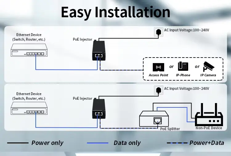 Konstruksi Tahan Lama: Injektor Poe 30W Berkinerja Tinggi dilengkapi ikatan ultrasonik yang mulus untuk perlindungan yang lebih baik terhadap debu dan tekanan fisik.