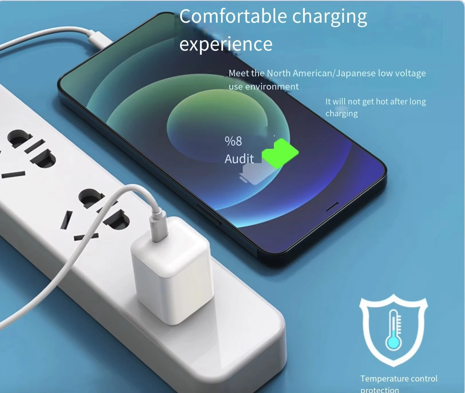 STARWELL Pengisi Daya Cepat 20W Japan Plug Quick kualitas tinggi, juga disebut pengisi daya cepat 20W PD dengan port USB-C dan Tipe-C mendukung pengisian daya cepat untuk iPhone dan perangkat Android, mencapai 0-50% dalam 30 menit. Ini memiliki berbagai perlindungan termasuk arus berlebih, tegangan berlebih, dan korsleting, memastikan kinerja yang aman dan andal. Terbuat dari bahan PC tahan api, memenuhi sertifikasi CE dan ETL, menawarkan kepatuhan terhadap standar keselamatan UE dan meningkatkan akses pasar.