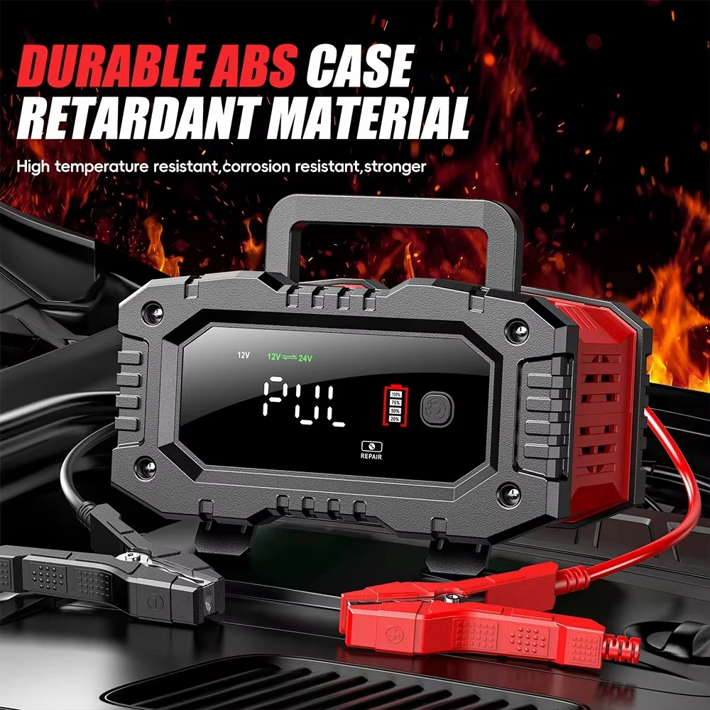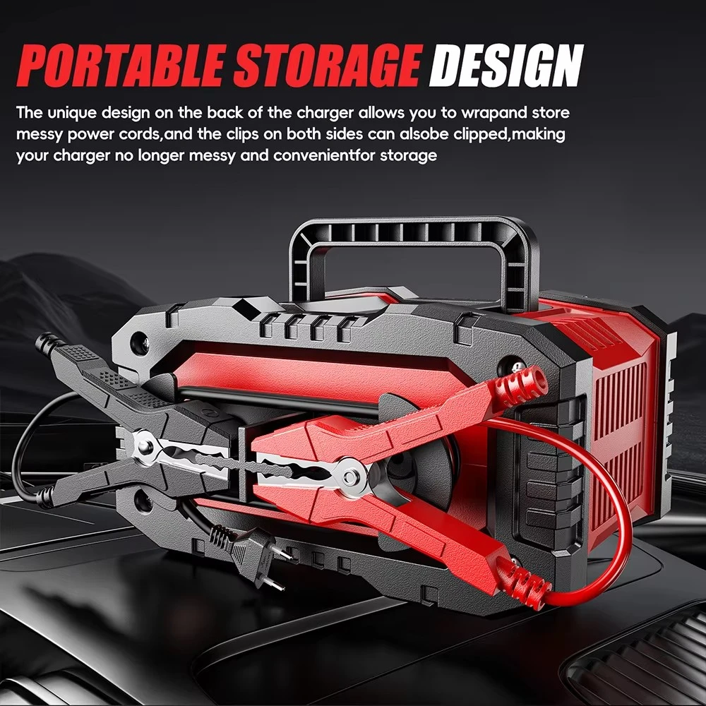 Kompatibilitas Baterai yang Luas Mendukung semua bahan kimia asam timbal utama—Flooded, Gel, Maintenance-Free, AGM, dan LiFePO₄ (Lithium Iron Phosphate)—dapat digunakan dengan baterai starter, baterai deep-cycle, baterai kelautan, dan baterai powersport. Satu pengisi daya mencakup hampir semua hal di garasi atau bengkel Anda.