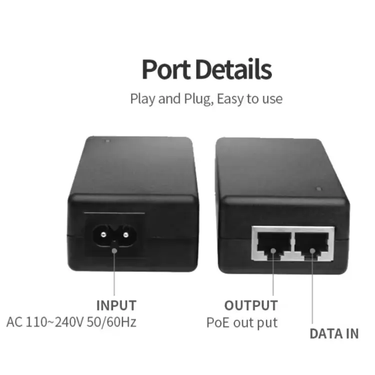 Injektor PoE pasif ini menggunakan transmisi daya langsung tanpa jabat tangan protokol, mengurangi kompleksitas sistem dan meningkatkan kompatibilitas dengan peralatan jaringan tertentu.