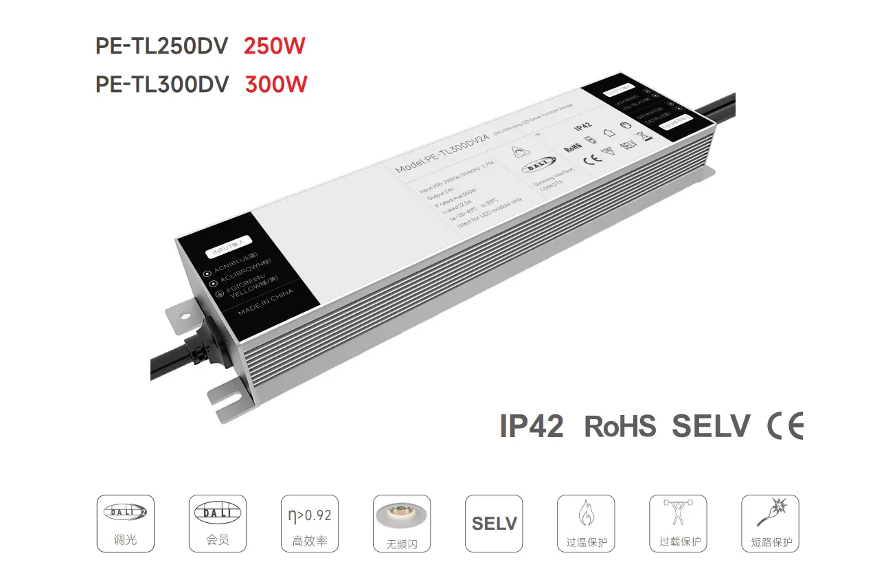 Dengan penutup IP20 yang ringkas, mudah dipasang di rongga langit-langit, lemari kontrol, atau perlengkapan pencahayaan. Desain tegangan konstannya memastikan kinerja yang konsisten untuk strip, panel, dan modul LED yang terhubung paralel, menjadikannya ideal untuk ruang ritel, kantor, hotel, dan proyek pencahayaan arsitektur luar ruangan.