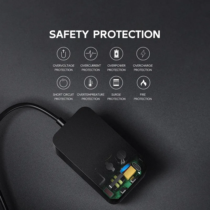 Perlindungan suhu berlebih, pengisian berlebih, tegangan berlebih, arus berlebih, perlindungan hubung singkat |
