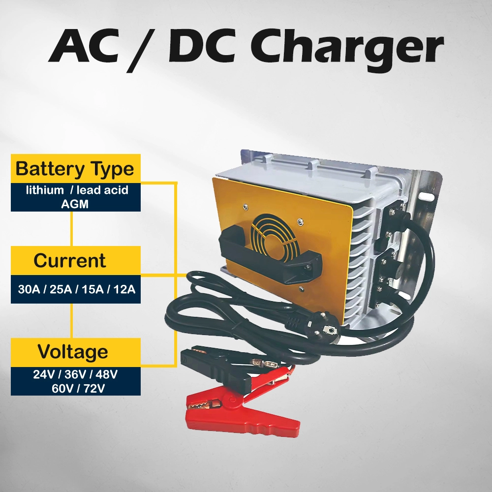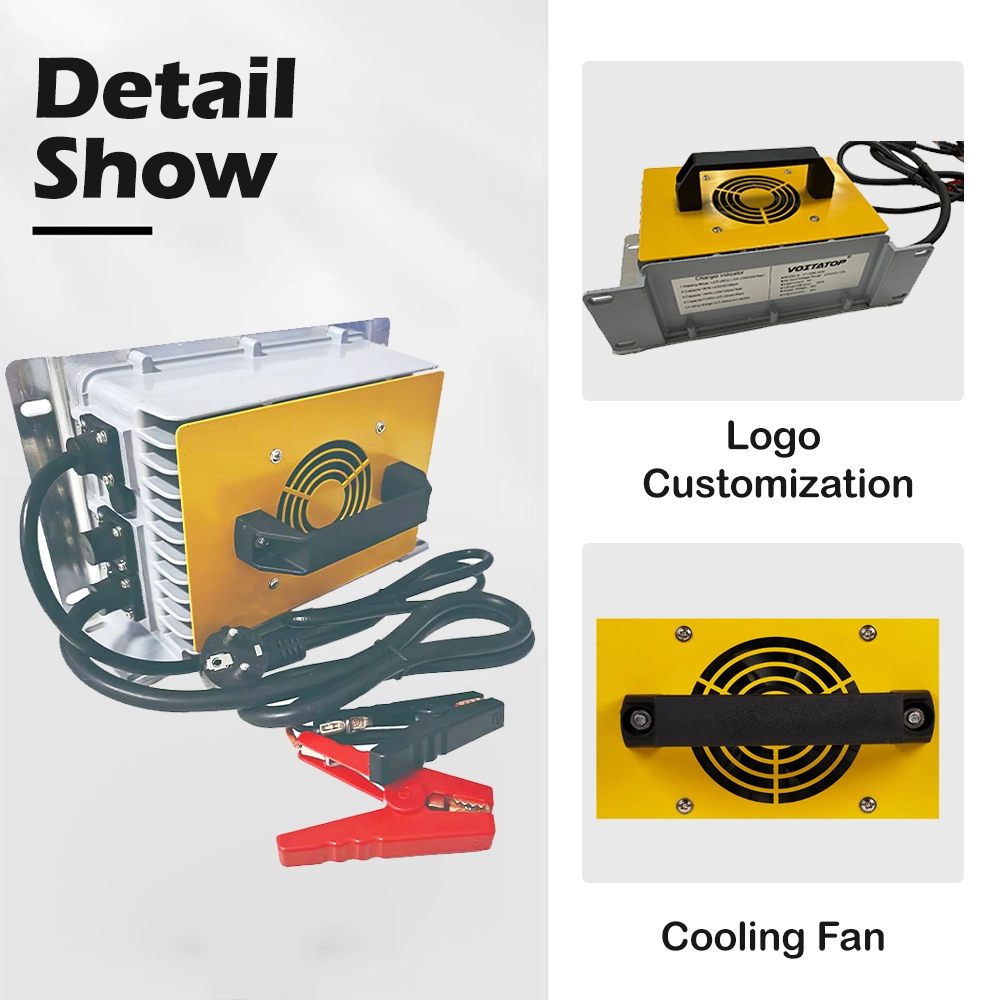 Dengan perlindungan internal terhadap tegangan berlebih, arus berlebih, korsleting, polaritas terbalik, suhu berlebih, dan tegangan rendah baterai, pengisi daya memastikan pengoperasian yang aman dalam segala kondisi. Desain yang tersegel dan bebas perawatan mengurangi waktu henti dan menurunkan total biaya kepemilikan, menjadikannya pilihan yang dapat diandalkan bagi operator armada dan produsen peralatan.