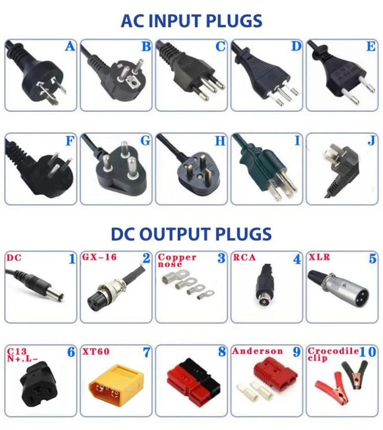 · Mendukung baterai timbal-asam (banjir, AGM, gel), lithium-ion (LiFePO₄), Ni-MH, dan Ni-Cd
