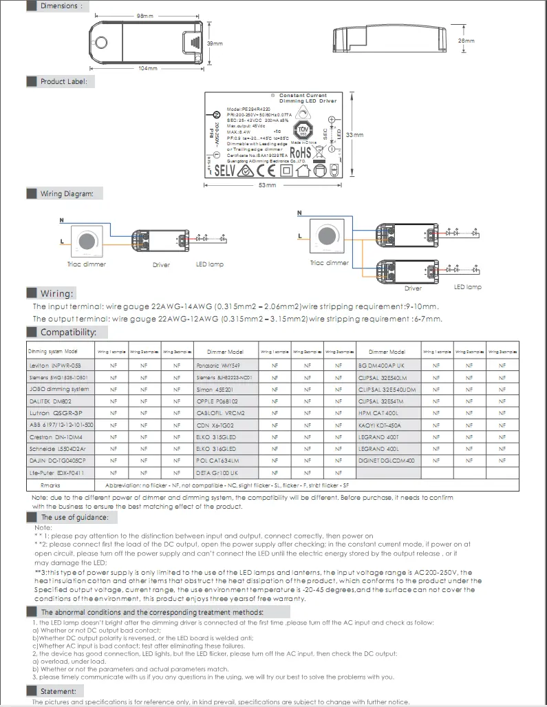 Driver led peredupan triac arus konstan PE294R 42V maks 200ma arus konstan adalah salah satu penyelam LED peredupan arus konstan yang dikembangkan oleh pabrikan China Starwell dengan faktor daya tinggi, efisiensi tinggi, presisi tinggi, penggunaan chip kontrol sakelar kerugian rendah stoble yang efisien dan komponen berkinerja tinggi membuatnya memiliki masa pakai kebisingan yang rendah dan karakteristik lainnya.