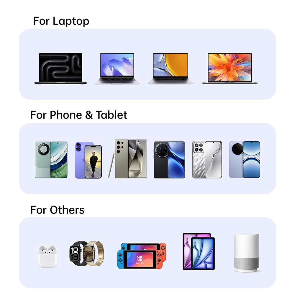 Kompatibilitas Universal: Pengisi daya pd kami dilengkapi dengan teknologi Power Delivery (PD), sehingga kompatibel dengan berbagai perangkat, termasuk ponsel cerdas, tablet, dan bahkan laptop tertentu. Ini adalah solusi pengisian daya terbaik untuk semua gadget Anda.