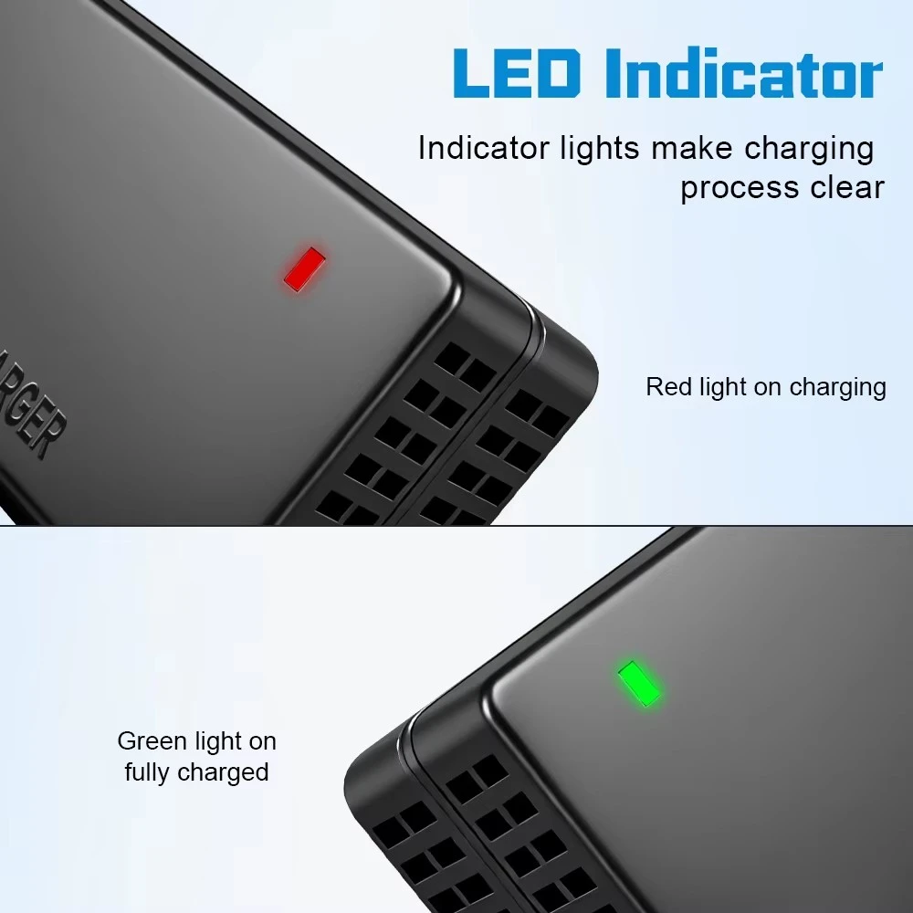 Meskipun memiliki performa yang kuat, pengisi daya ini memiliki desain yang ringkas dan ringan sehingga mudah dibawa. Baik Anda memerlukan pengisi daya untuk di rumah, kantor, atau untuk disimpan di ransel untuk mengisi daya saat bepergian, portabilitasnya memastikan Anda selalu memiliki akses ke daya yang aman dan andal. Tahan lama dan mudah digunakan, pengisi daya 48V ini adalah pendamping daya yang ideal untuk menjaga kesehatan dan kinerja baterai lithium-ion Anda.