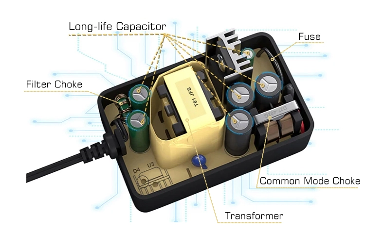 * Lebih banyak unit untuk seri 48W: tersedia 5V/9V/12V/15V/19V/24V/36V/48V * Keamanan: OCP/OVP/OTP, SCP, pemutusan beban berlebih otomatis, pemutusan tegangan berlebih, pemutusan termal otomatis. * Kompatibilitas luas: Lampu Strip LED, Printer 3D, transceiver radio ham, kamera CCTV, amp subwoofer mobil, penguat audio, router nirkabel, Kucing ADSL, Pelembap Udara, HUB, Keyboard, Speaker BT, Monitor, Webcam, DVR, NVR, catu daya audio/video