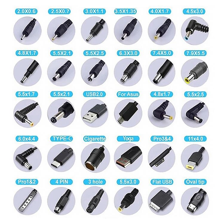 USB-C, 5.5x2.1mm, 5.5x2.5mm, 4.0x1.7mm, 3.5x1.35mm dan lebih banyak lagi tersedia |