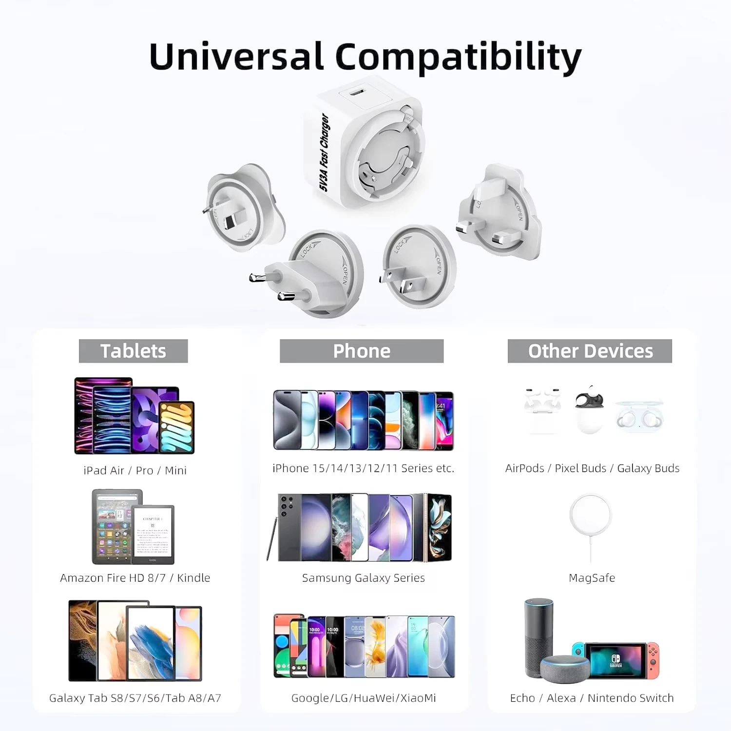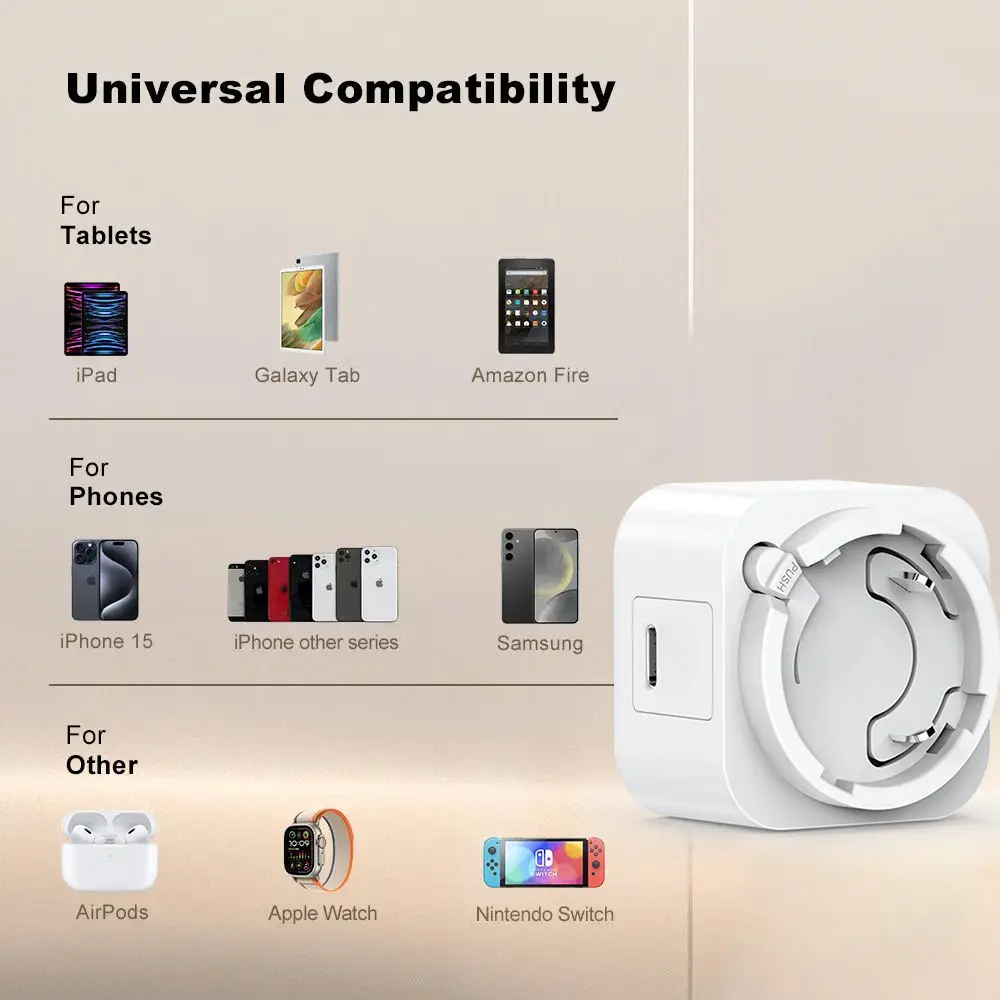 Ideal untuk memberi daya pada ponsel cerdas, tablet, speaker portabel, dan perangkat elektronik lainnya, adaptor ini menggabungkan kecepatan, keamanan, dan keserbagunaan global dalam satu solusi ringkas.