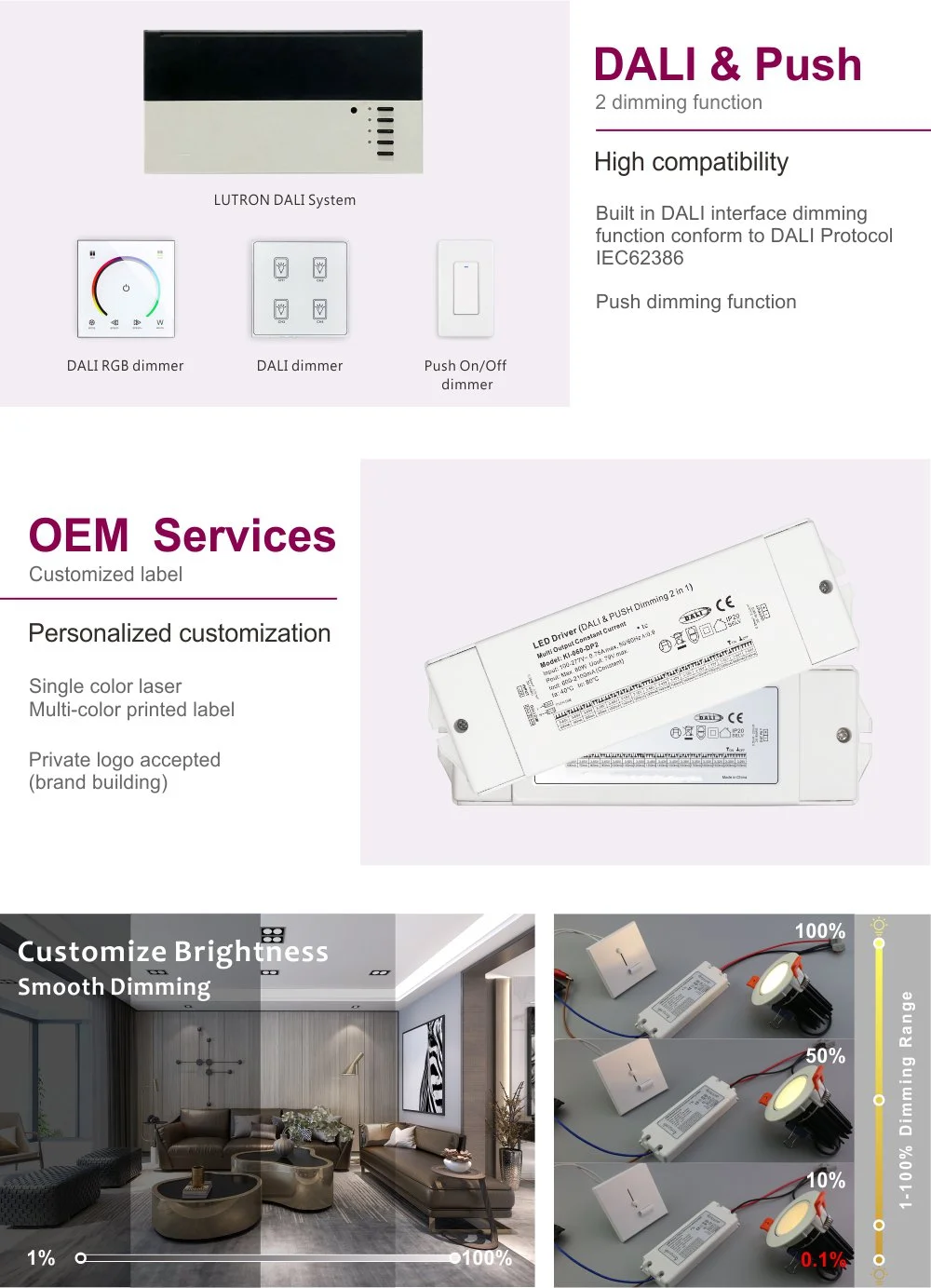 Produk ini secara ketat mematuhi standar protokol DALI-2 terbaru, melampaui fungsi dasar sakelar peredupan. Ini memungkinkan peredupan yang mulus dan bertahap dari 0,1% hingga 100% tanpa kedipan atau noise. Melalui sistem DALI, pengalamatan lampu secara individual, kontrol grup, pengaturan pemandangan (seperti mode rapat dan mode santai), tugas berwaktu, dan pemantauan energi dapat dicapai dengan mudah. Teknologi ini terintegrasi secara mulus ke dalam sistem manajemen cerdas gedung dan berfungsi sebagai landasan untuk menciptakan pencahayaan cerdas yang efisien dan hemat energi.