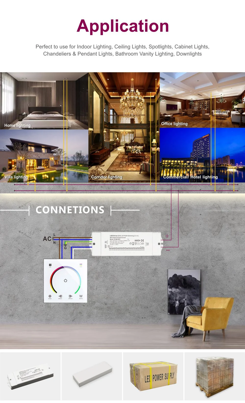 Baik itu lampu panel LED di kantor, lampu downlight LED di pusat perbelanjaan, strip lampu tersembunyi di koridor hotel, atau pencahayaan aksen di ruang rumah, driver ini adalah pilihan ideal. Perumahan paduan aluminium kompak dengan pot penuh memastikan manajemen panas yang sangat baik dan pengoperasian yang stabil dalam jangka panjang. Beberapa sirkuit perlindungan bawaan untuk tegangan lebih, arus lebih, korsleting, dan panas berlebih memberikan perlindungan keselamatan komprehensif untuk seluruh sistem pencahayaan.