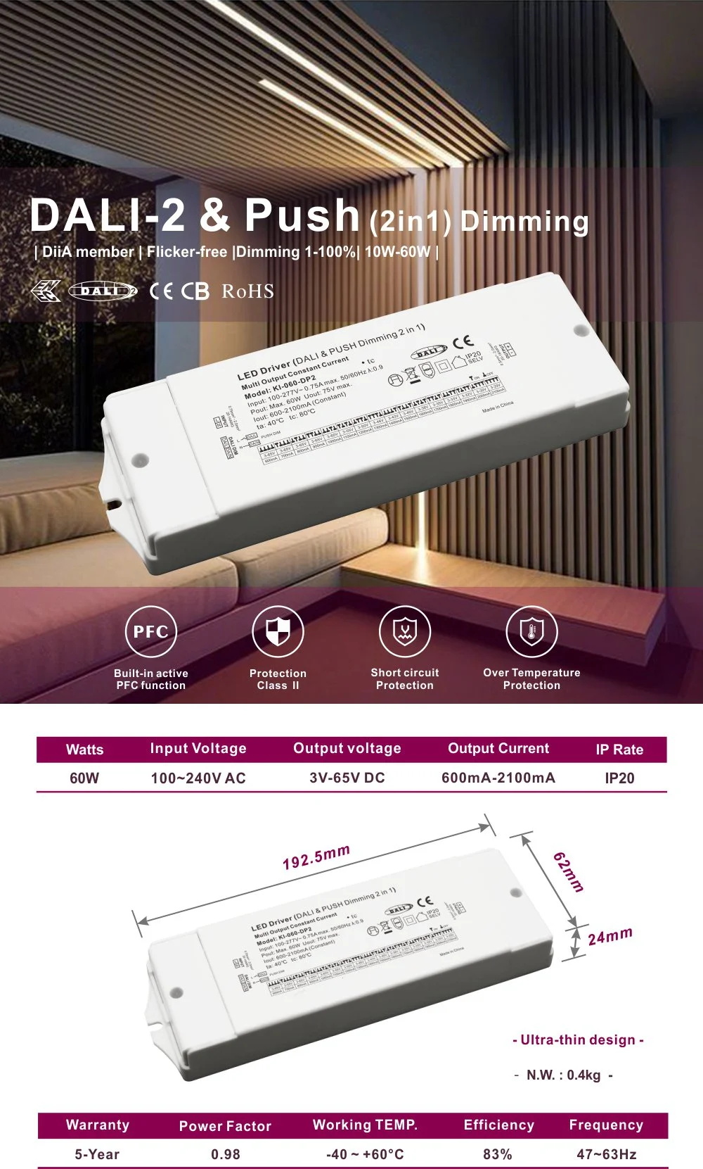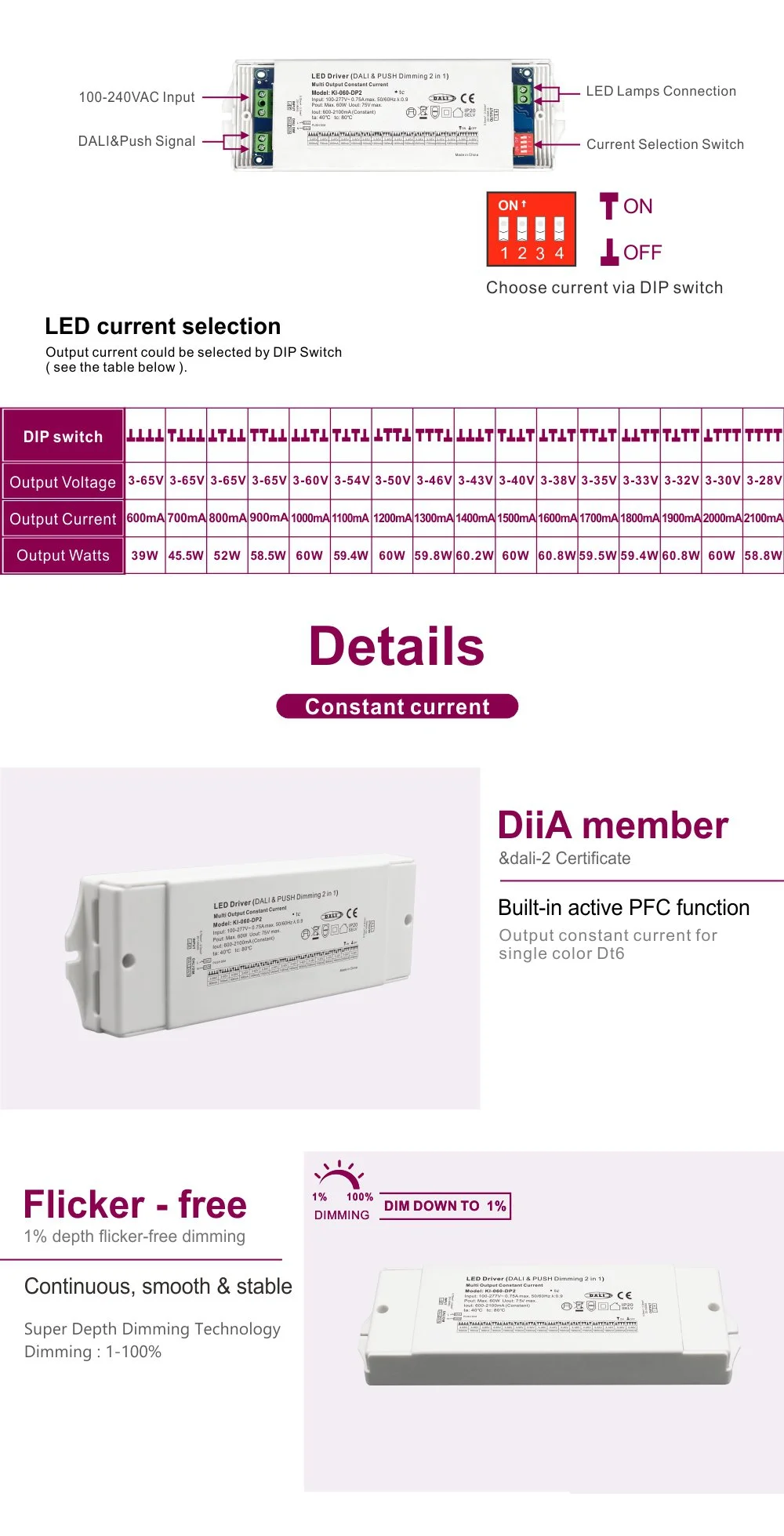 Driver led CCT peredupan dali arus konstan 60W |