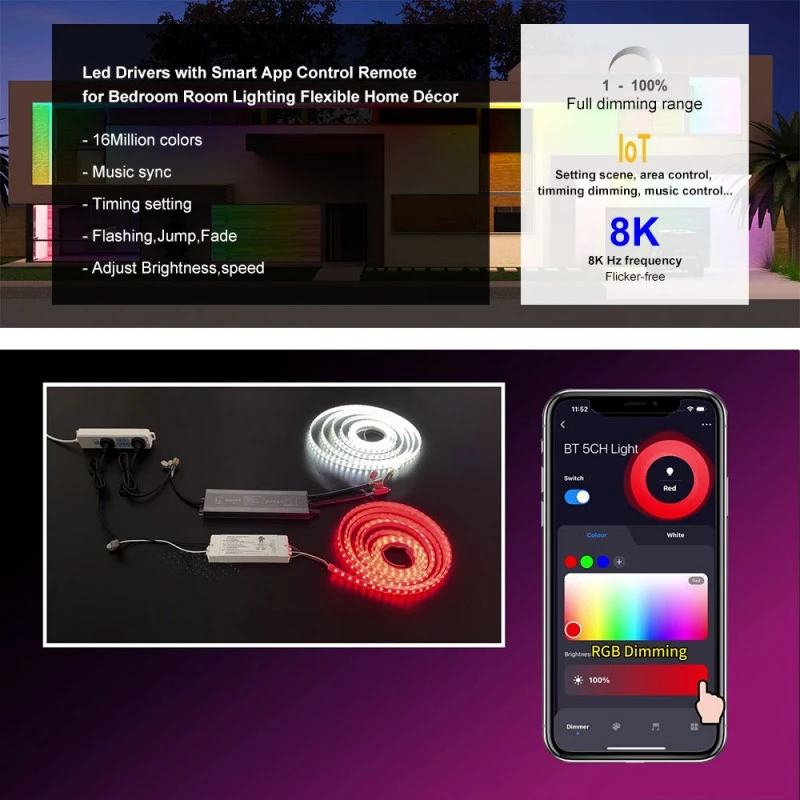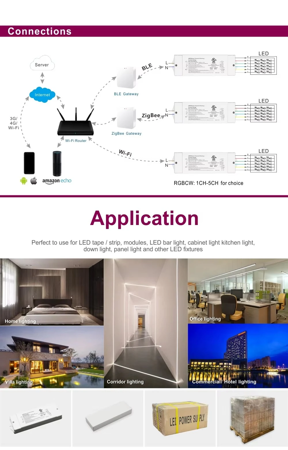 Peredupan Cerdas di Ujung Jari Anda Dilengkapi modul nirkabel ZigBee terintegrasi dengan teknologi TUYA, driver ini menawarkan kontrol cerdas yang mulus. Sesuaikan kecerahan melalui aplikasi seluler atau perintah suara melalui Google Home dan Amazon Echo. Output PWM 8K Hz frekuensi tinggi memastikan peredupan sepenuhnya bebas kedip, sedangkan rentang peredupan 1-100% dengan kedalaman 1% memungkinkan transisi yang mulus dan penciptaan suasana yang sempurna.