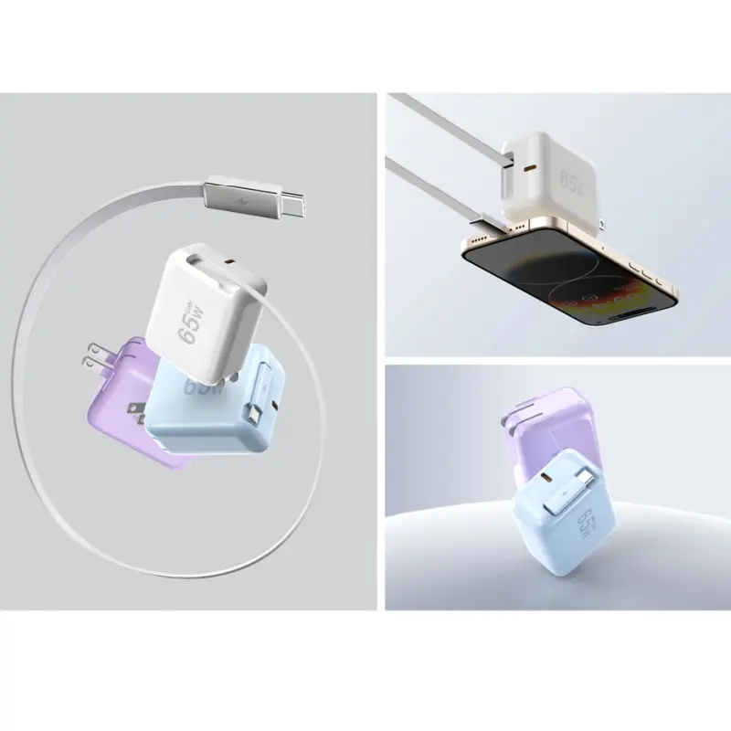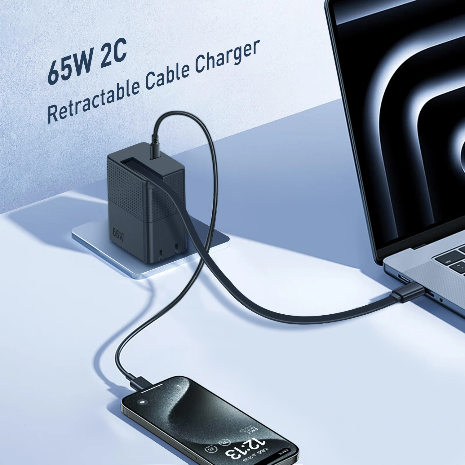 Pengisi Daya PD 65W dengan Kabel usb c yang mudah diatur |