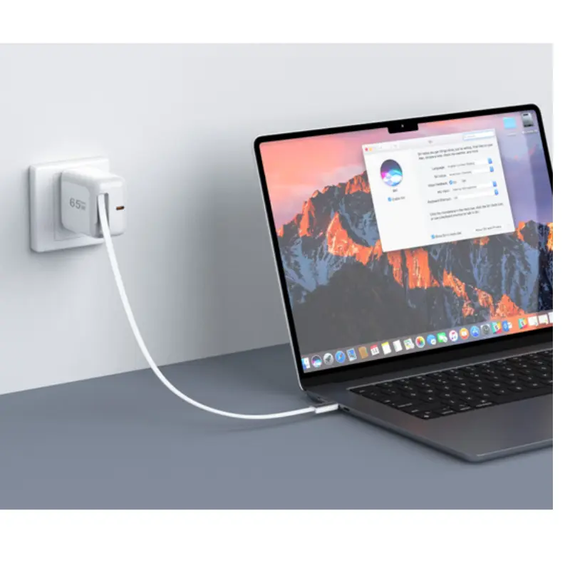 Pengiriman Daya Berkecepatan Tinggi 65W: Menghadirkan pengisian daya cepat untuk laptop, tablet, dan ponsel cerdas dengan teknologi PD 3.0 canggih, mengisi daya MacBook Pro hingga 50% hanya dalam 45 menit.