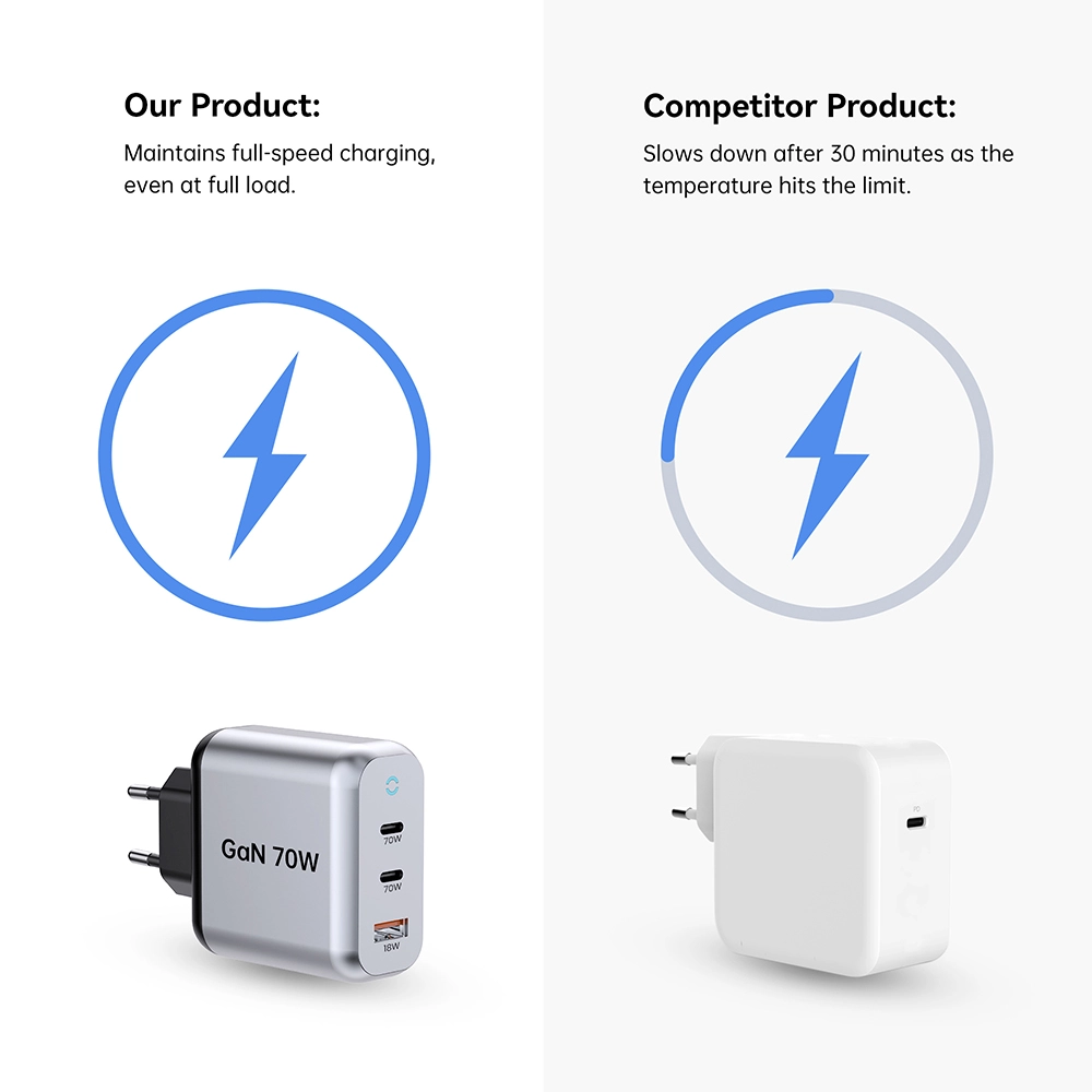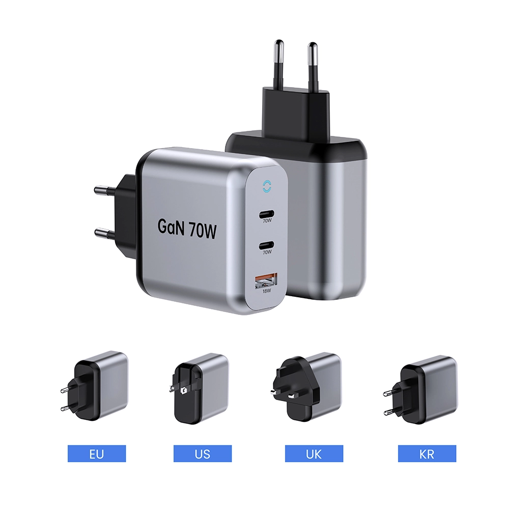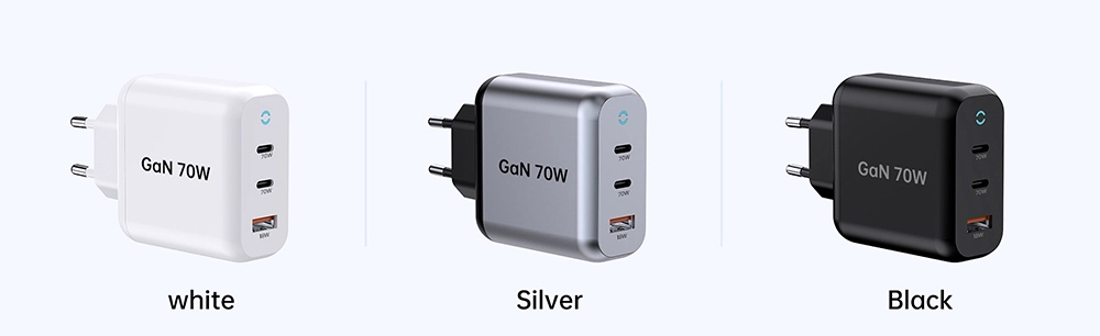 Pengisi Daya Cepat PD 70W Starwell yang tahan lama untuk tablet latpop juga disebut Pengisi Daya Cepat GaN 70W: 2C1A, memenuhi kebutuhan harian akan pengisian daya cepat pada ponsel dan perangkat tablet. Berukuran kecil, kinerja kuat, dengan teknologi galium nitrida canggih. Saat digunakan dalam satu port, daya output maksimum antarmuka USB-C1 adalah 70W. Saat kedua port digunakan bersamaan, USB-C1 masih mempertahankan pengisian cepat PD 45W. Mendukung beberapa protokol pengisian cepat, termasuk PD3.0, PPS, QC4+, dan QC3.0, memastikan kompatibilitas luas dengan berbagai perangkat