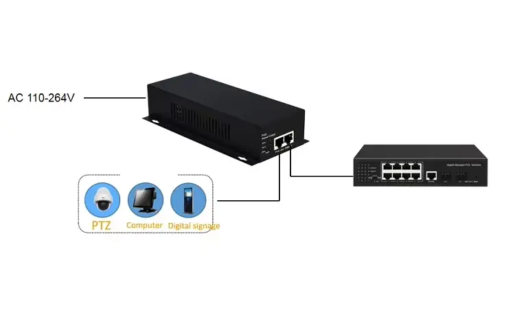 Persyaratan Pengkabelan: Untuk pengiriman daya penuh 90W pada jarak yang lebih jauh (hingga 100m), sangat disarankan untuk menggunakan kabel Ethernet Cat6a (atau lebih tinggi) untuk meminimalkan hilangnya daya dan timbulnya panas.