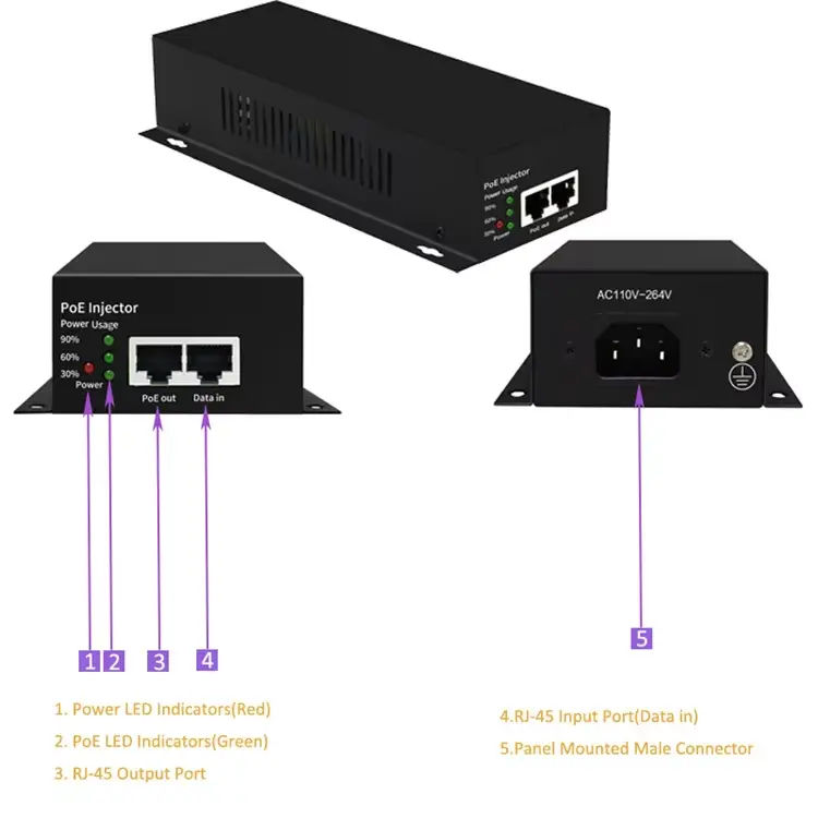 Sebagai produsen catu daya profesional di Tiongkok, Starwell telah memperkenalkan Injektor Gigabit PoE Casing Logam IEEE802.3bt 90W yang sepenuhnya mematuhi standar IEEE 802.3bt. Mendukung output 52V, memberikan daya maksimum 90W per port, dan kompatibel dengan standar 802.3af/at.