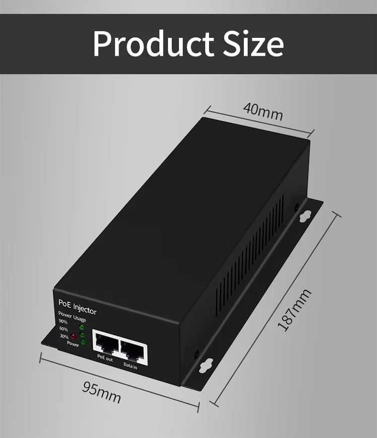 Performa Daya yang Andal Dengan rentang tegangan input AC100-240V dan output DC48V1.25A yang stabil, injektor POE bertenaga baterai menghasilkan daya PoE 48V yang bersih dan konsisten ke perangkat yang terhubung. Mendukung konfigurasi inti saluran listrik 1/2,4/5(+) dan 3/6,7/8(-), memastikan kompatibilitas luas dengan berbagai perangkat bertenaga PoE di sisi penerima.