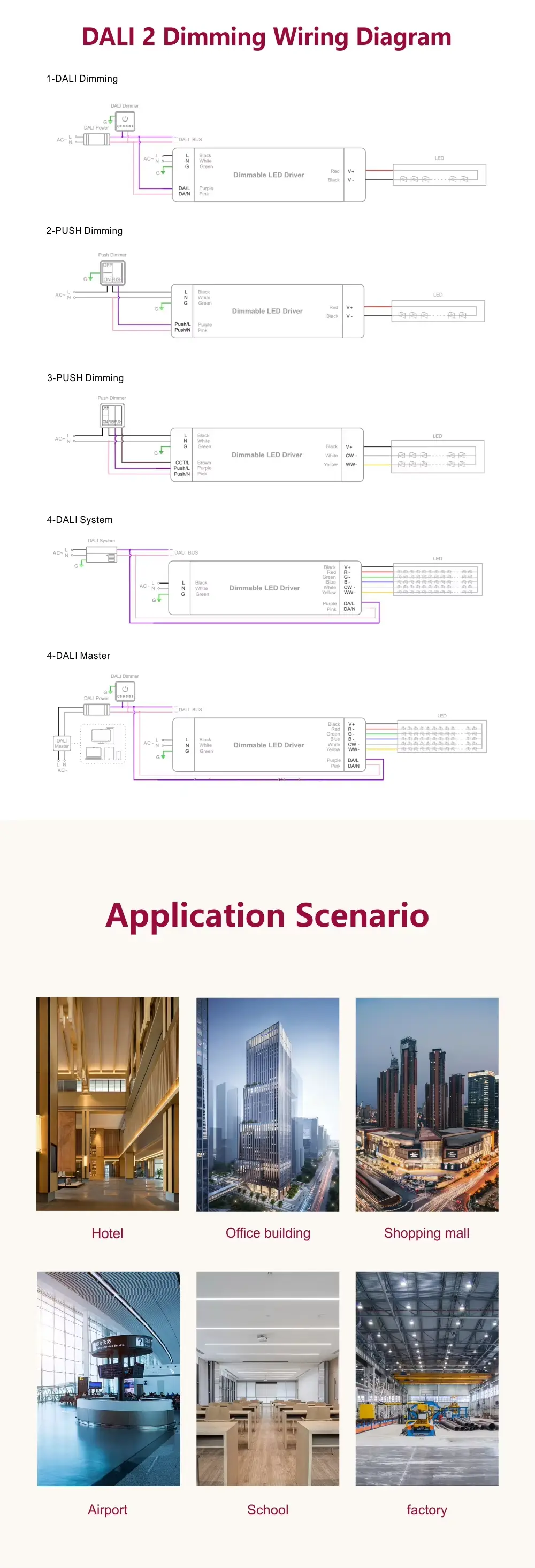 Driver Led Peredupan CCT Arus Konstan DALI cocok untuk proyek arsitektur, komersial, dan perhotelan kelas atas, ini memberdayakan penyesuaian suhu dan intensitas warna terang yang tepat dari satu driver. DALI-2 DT8 memastikan kontrol yang tahan masa depan dan dapat dioperasikan untuk pemandangan canggih dan manajemen energi, sementara opsi Push Dimming manual menyederhanakan pengaturan di mana sistem kontrol khusus tidak diperlukan.