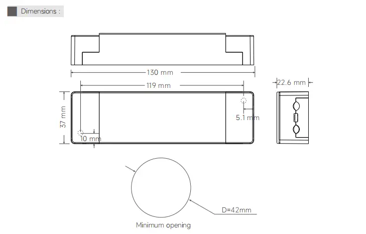 130×37×22.6mm(P×L×T) |