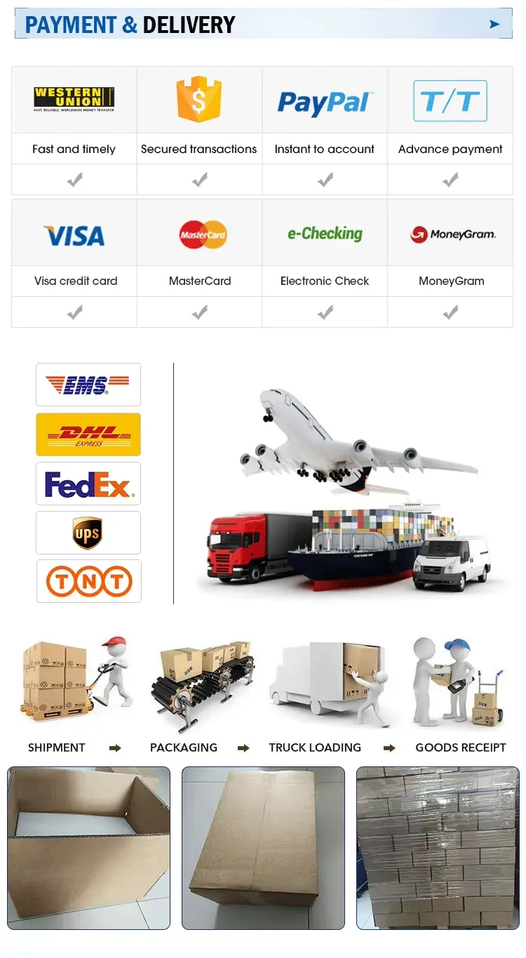 A4: Pesanan kecil dikirimkan dengan pos kilat (FEDEX, DHL, EMS, TNT). Pesanan dalam jumlah besar dikirimkan melalui laut atau udara. Harga FOB tersedia. Anda dapat menggunakan forwarder Anda atau milik kami.