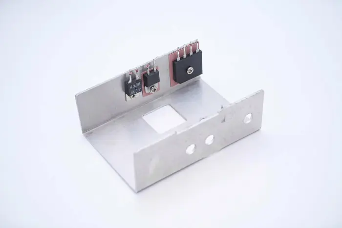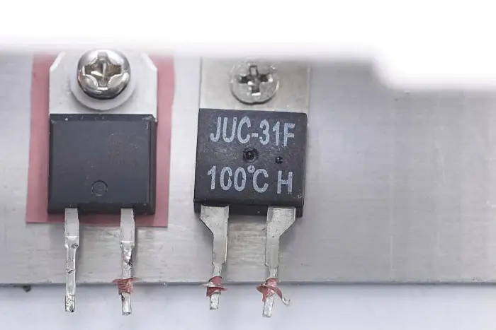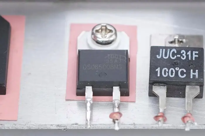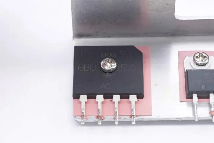 Jembatan penyearah, dioda penyearah PFC, dan sakelar termal dipasang pada unit pendingin.