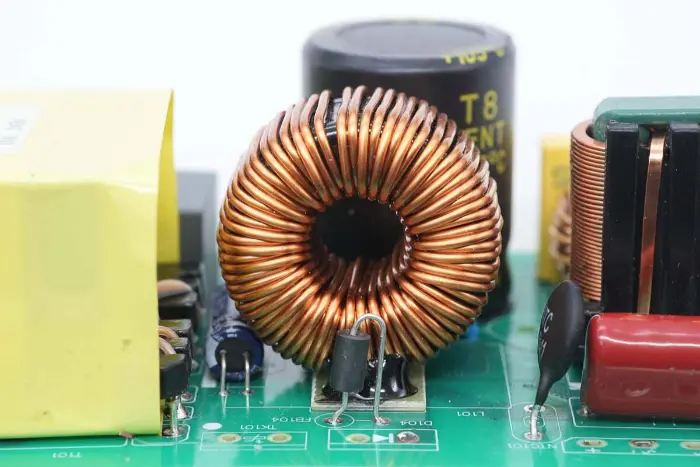 Tampilan jarak dekat dari induktor filter cincin magnetik keluaran.