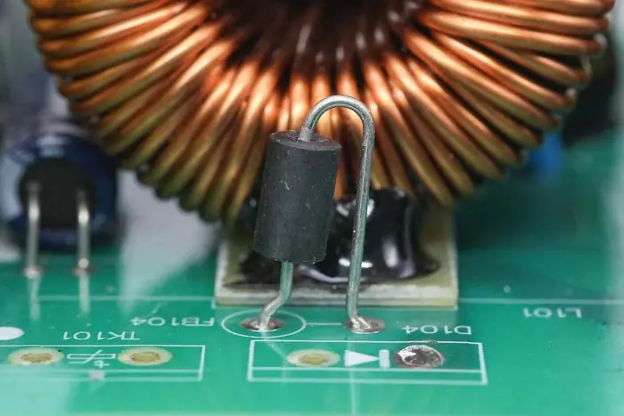 Dioda penyearah PFC dihubungkan secara seri dengan manik magnet.