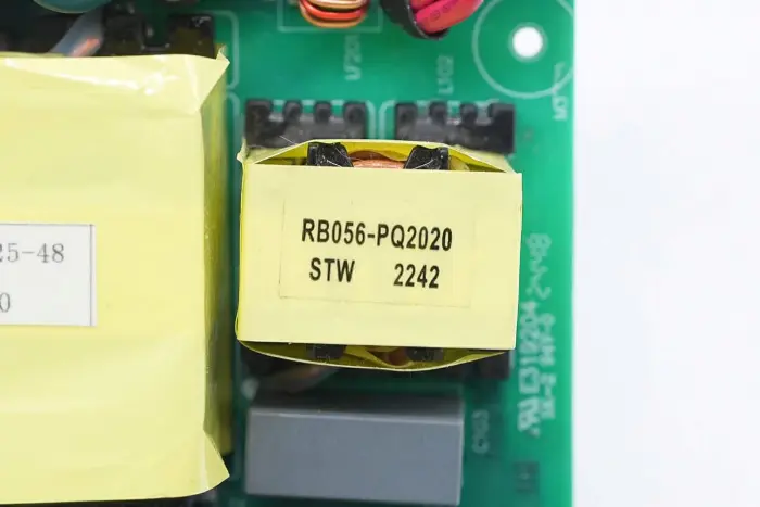 Trafo mengadopsi inti magnetik PQ3525, ditandai dengan model catu daya R0168.