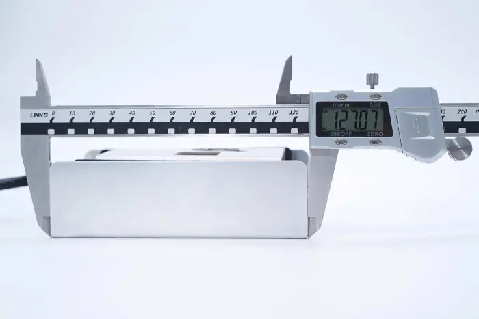 Panjang modul catu daya yang diukur dengan jangka sorong adalah sekitar 127,1 mm.