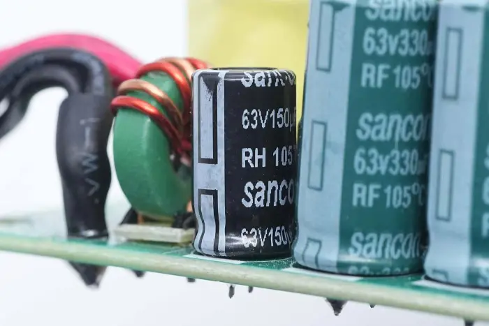 Kapasitor filter lainnya memiliki spesifikasi 63V 150μF.