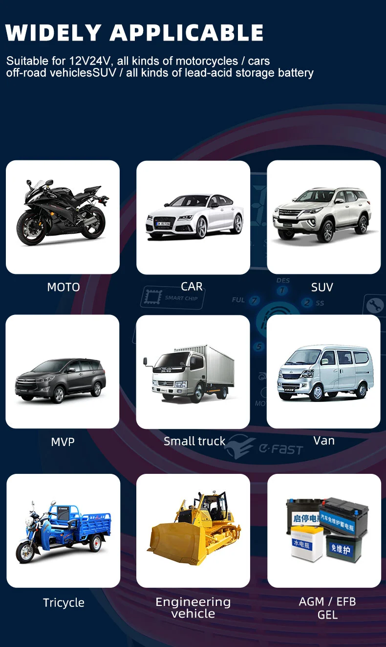 TK-1500 adalah pengisi daya baterai otomatis penuh yang kuat, menawarkan dua mode pengisian daya: 12V/20A dan 24V/10A. Ini dirancang khusus untuk mobil, truk, sepeda motor, perahu, mesin pemotong rumput, SUV, RV, traktor, dan semua jenis skuter. Baik itu baterai timbal-asam tradisional (banjir, AGM, gel, siklus dalam, baterai kalsium), atau baterai lithium iron phosphate (LiFePO4) dan lithium-ion yang canggih, TK-1500 dapat dengan cerdas mengidentifikasi dan mencocokkan kurva pengisian daya terbaik, benar-benar mencapai fungsionalitas multiguna dalam satu perangkat.