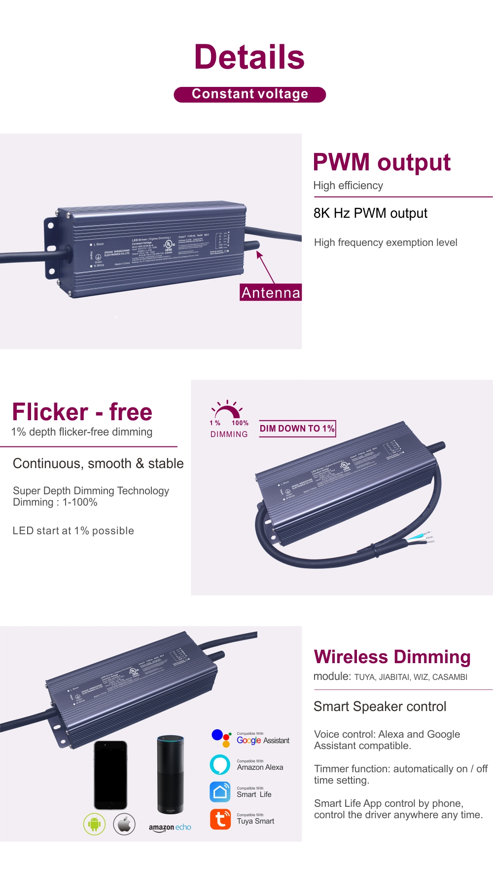 Didesain untuk lingkungan yang menuntut, driver led 24V tegangan konstan Tuya Zigbee ini memadukan kinerja dan daya tahan.